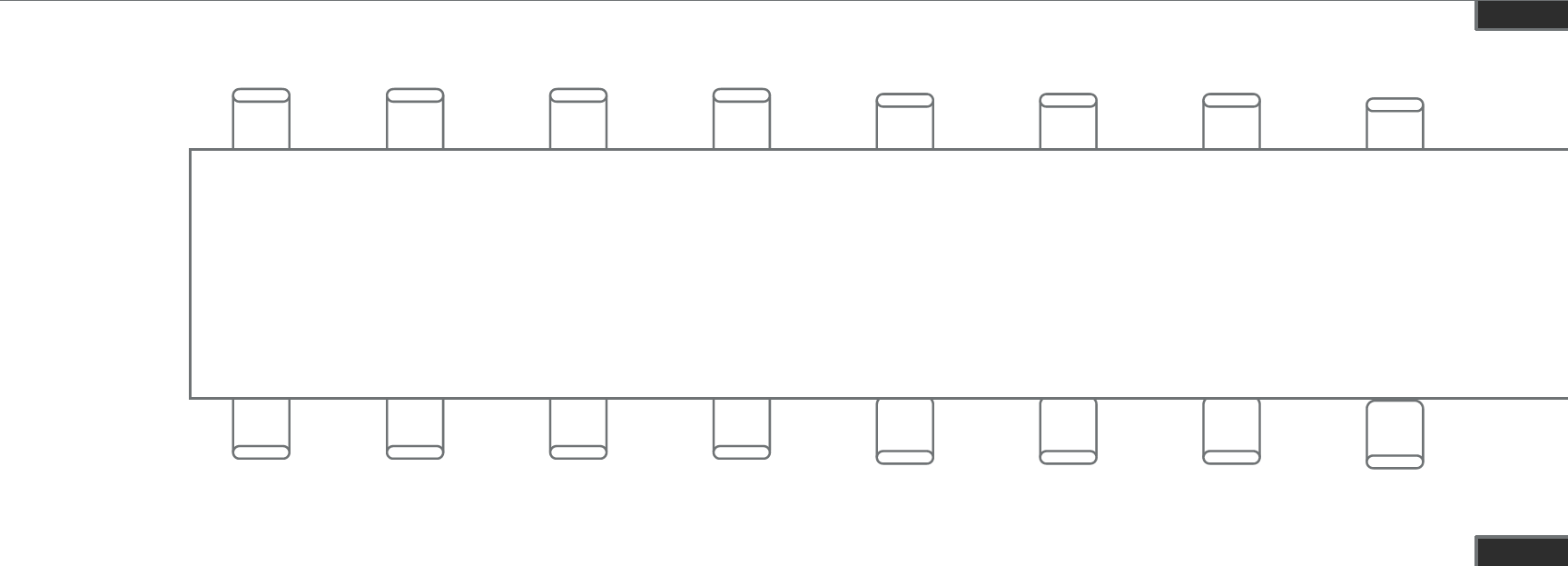 Seating for 28 guests in a presentation arrangement.