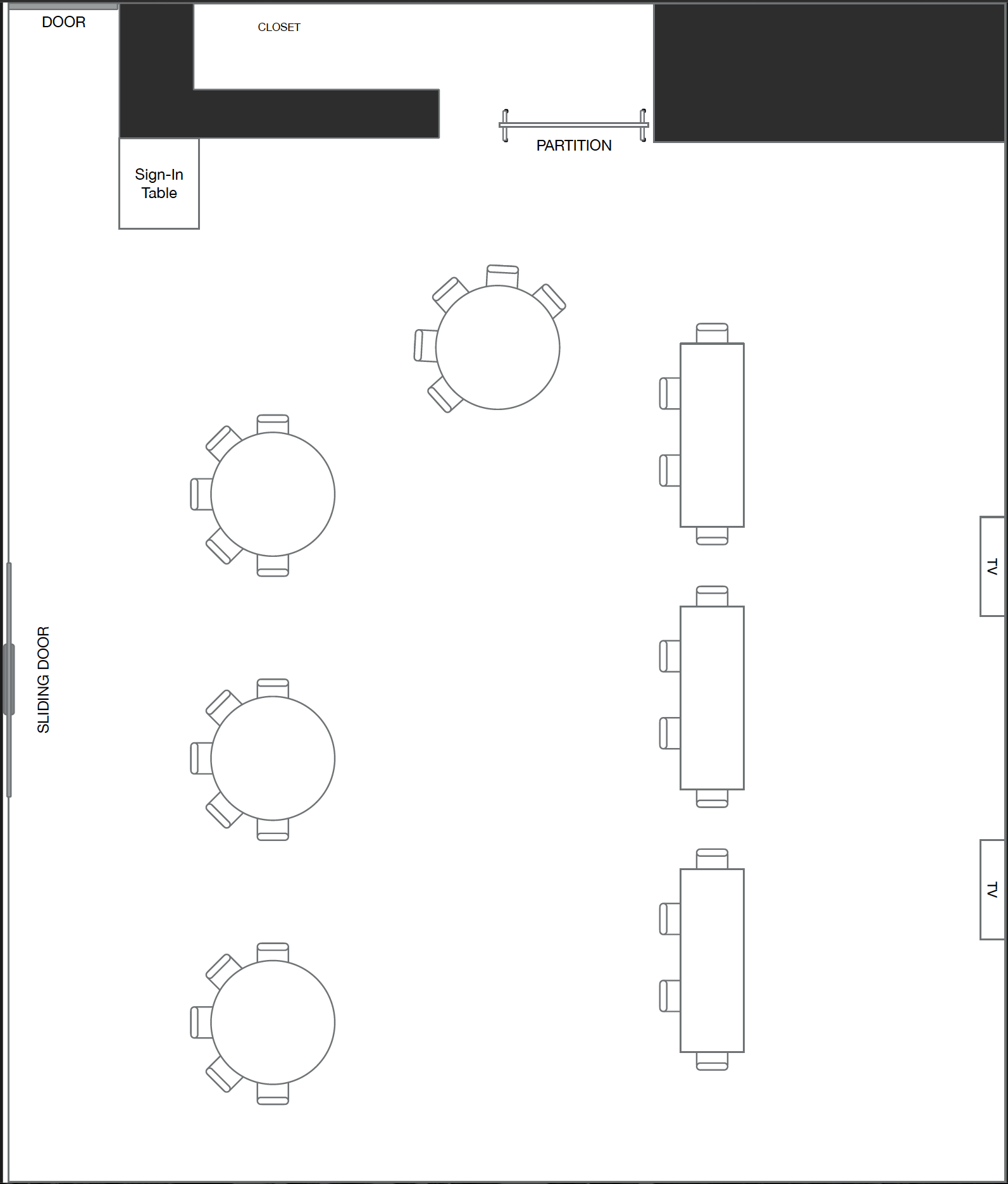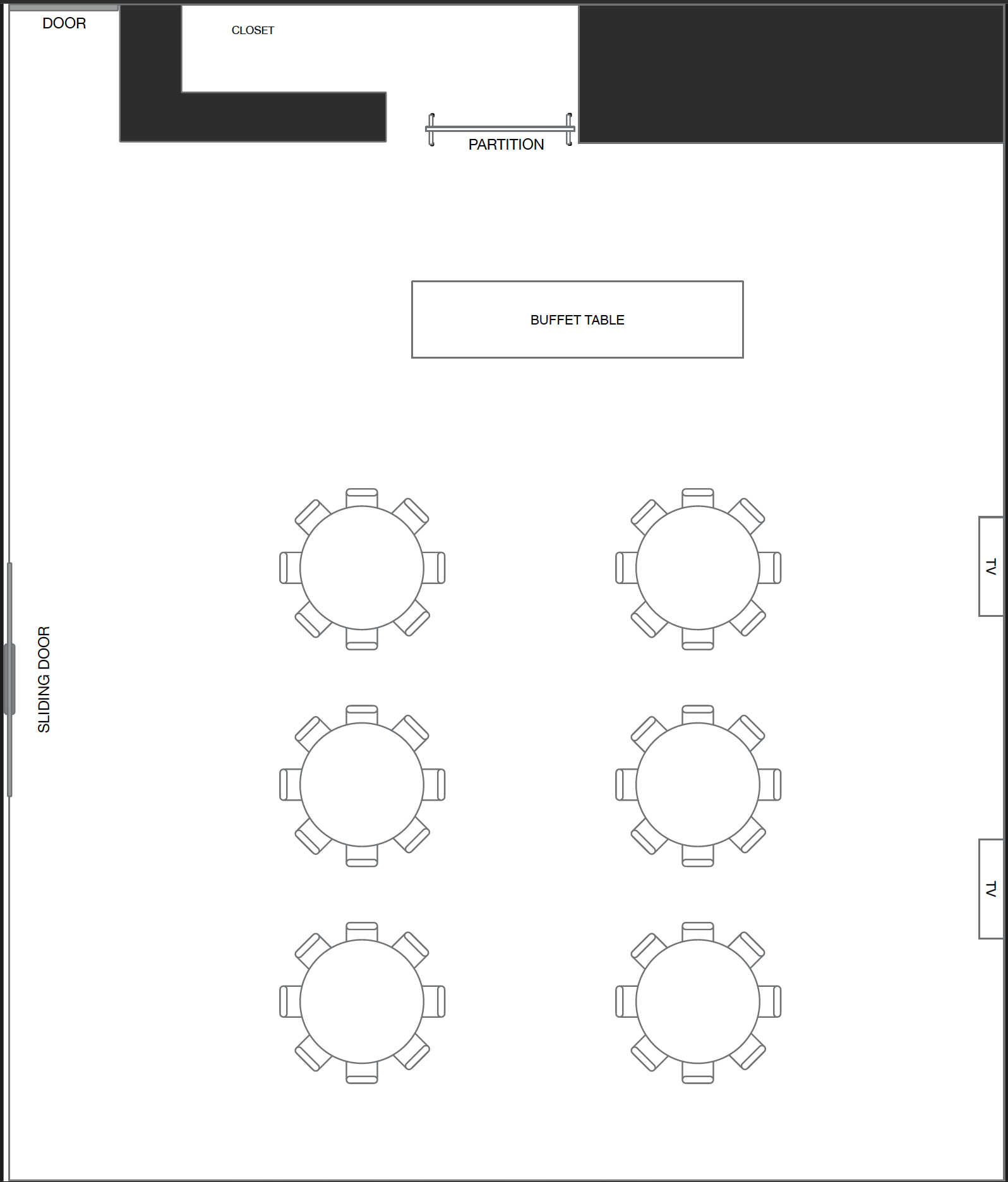 Seating for 48 with a buffet table.
