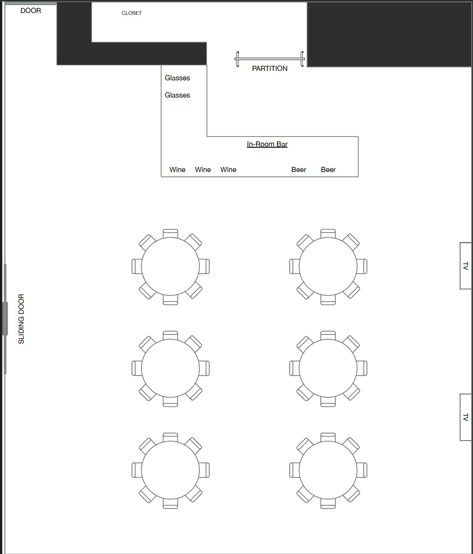 Seating for 48 guests with a bar.
