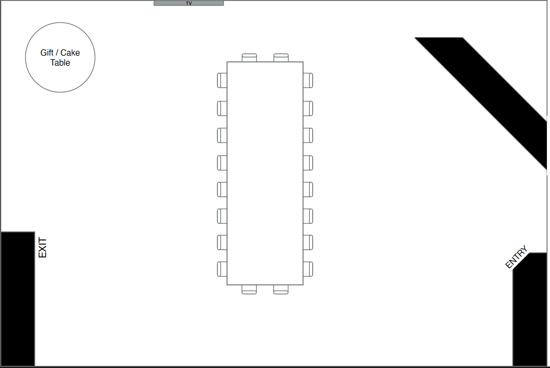Seating for 32 guests with a buffet table.